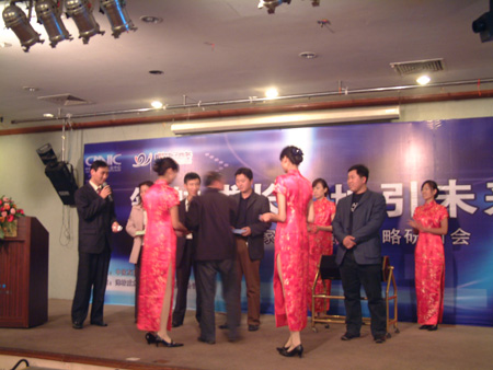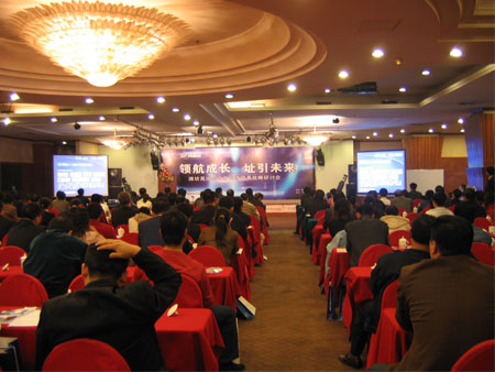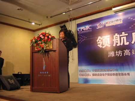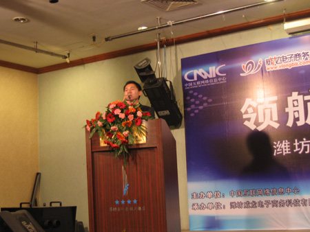 中國(guó)互聯(lián)網(wǎng)絡(luò)信息中心和威龍電子商務(wù)科技有限公司主辦的“領(lǐng)航貿(mào)易 “址”引財(cái)富——濰坊高端企業(yè)家網(wǎng)絡(luò)貿(mào)易戰(zhàn)略研討會(huì)”,于10月23日在濰坊金融國(guó)際大廈成功舉行。中國(guó)互聯(lián)網(wǎng)絡(luò)信息中心、威龍電子商務(wù)及濰坊諸多知名企業(yè)的領(lǐng)導(dǎo)近三百人出席了本次會(huì)議。會(huì)議就如何借助中文通用網(wǎng)址保護(hù)網(wǎng)上品牌、推廣企業(yè)網(wǎng)站進(jìn)行了深入的探討,同時(shí),眾多企業(yè)負(fù)責(zé)人現(xiàn)場(chǎng)對(duì)自己的行業(yè)、產(chǎn)品及公司名稱等相關(guān)關(guān)鍵詞進(jìn)行了及時(shí)保護(hù)。并有許多企業(yè)代表借此機(jī)會(huì)紛紛上臺(tái)對(duì)威龍?zhí)峁┑姆?wù)提出了褒獎(jiǎng)。