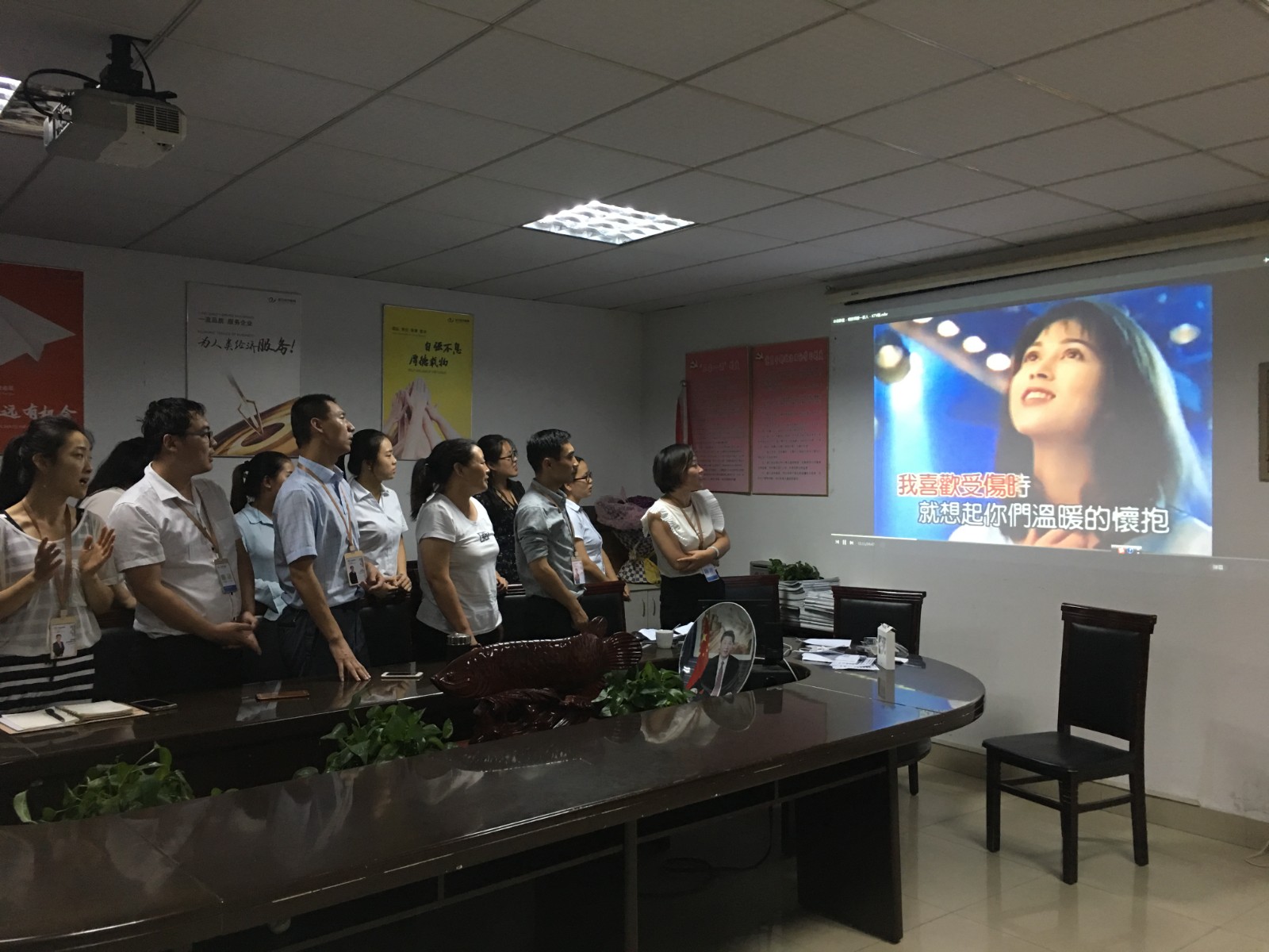 最后,以一首歌曲《相親相愛一家人》,8月積分制度的快樂會議完美落幕。