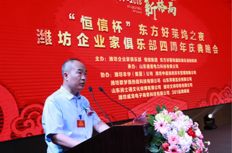 濰坊市工商聯(lián)副主席劉杰然先生向俱樂部四周年慶表示祝賀,俱樂部成立四年來,能夠圍繞濰坊經(jīng)濟(jì)發(fā)展的大局,圍繞市委、市政府的中心工作,能夠在濰坊市工商聯(lián)的悉心指導(dǎo)下,積極拓展各項(xiàng)工作,為濰坊市工商聯(lián)行業(yè)組織建設(shè)工作增添了濃重的一筆。希望新當(dāng)選的理事會(huì)領(lǐng)導(dǎo)班子群策群力,充分發(fā)揮俱樂部?jī)?yōu)勢(shì),形成千帆競(jìng)發(fā)、百舸爭(zhēng)流的良好發(fā)展勢(shì)頭。為濰坊企業(yè)家整體形象不斷提升貢獻(xiàn)力量!